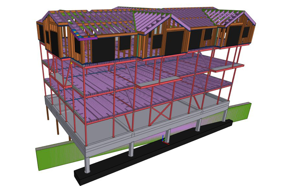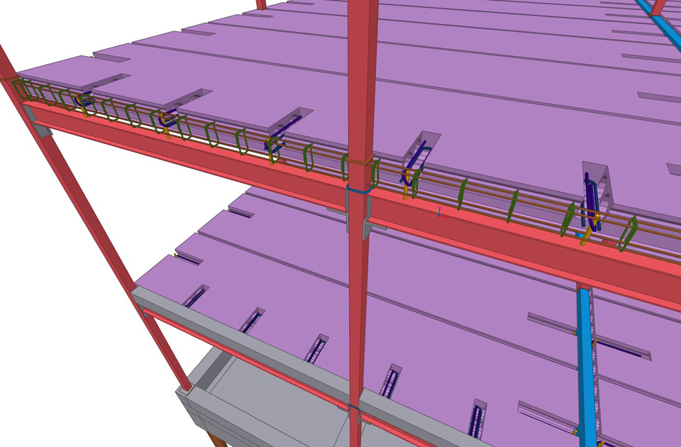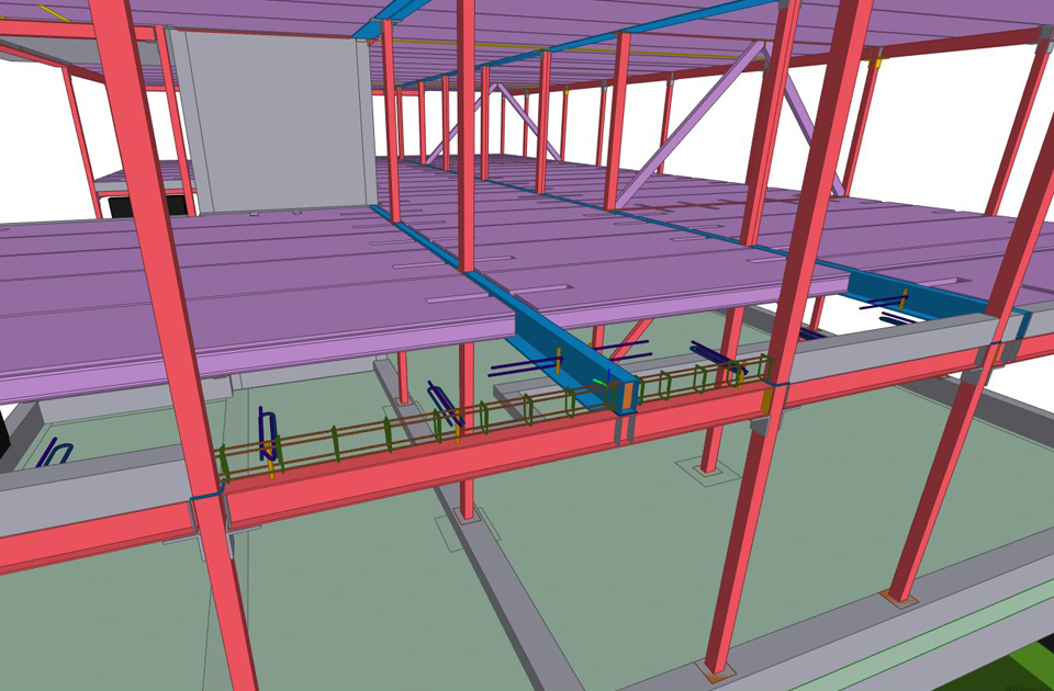 Konstrukcja szkieletowa stalowa i drewniana, stropy z płyt kanałowych sprężonych, klatka schodowa i winda żelbetowa.