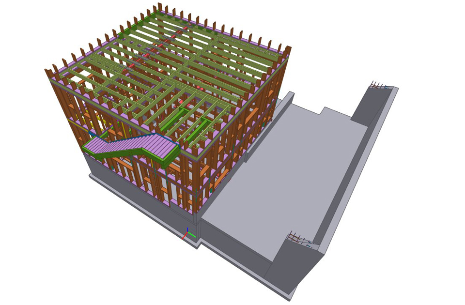 Część mieszkalna szkieletowa stalowa i drewniana.