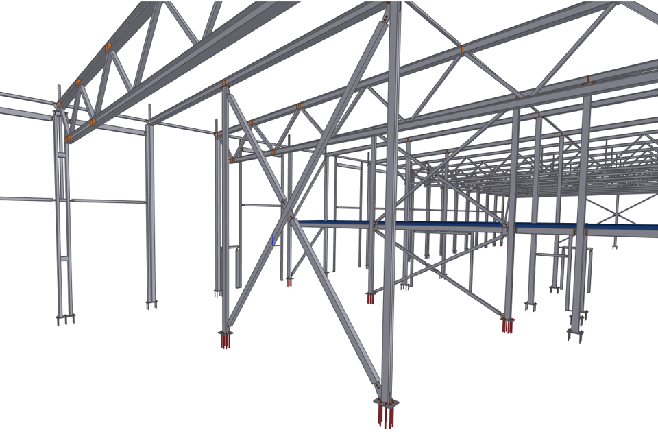 Obliczenia i rysunki warsztatowe hali stalowej 24x84m.