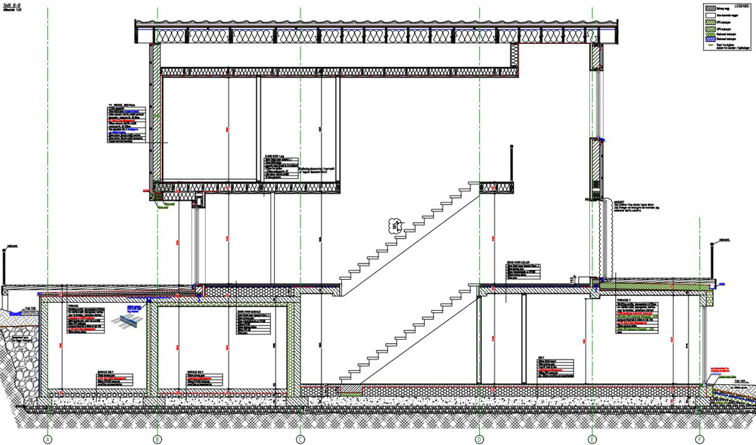 Projekt budynku mieszkalnego o konstrukcji żelbetowej, szkieletowej drewnianej i stalowej:
