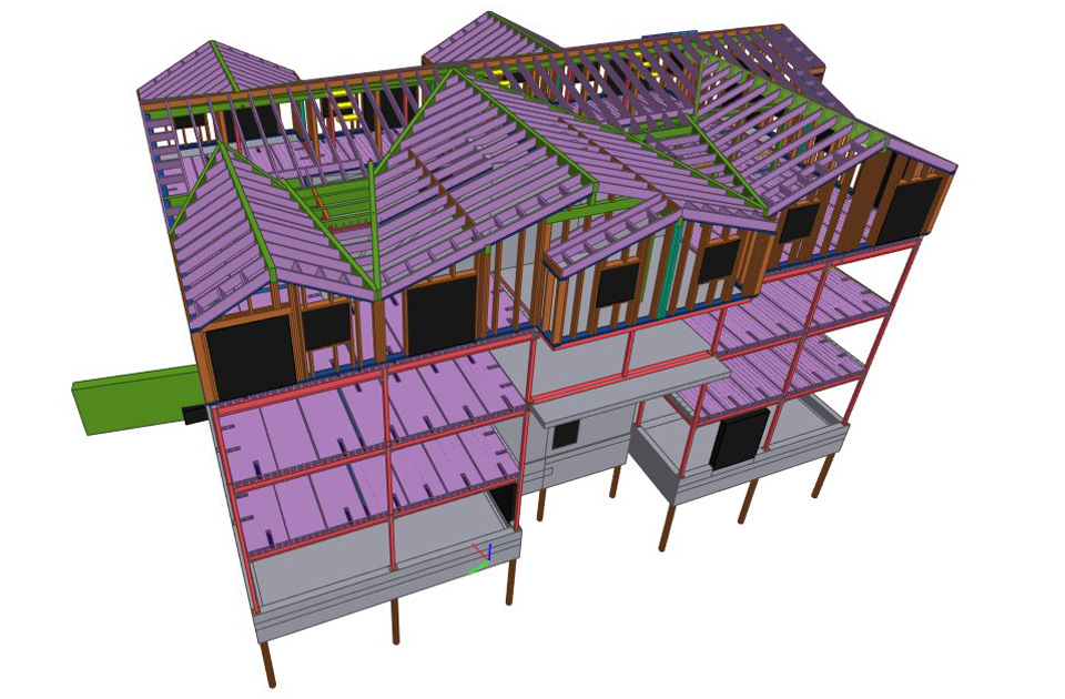 Konstrukcja szkieletowa stalowa i drewniana, stropy z płyt kanałowych sprężonych, klatka schodowa i winda żelbetowa.